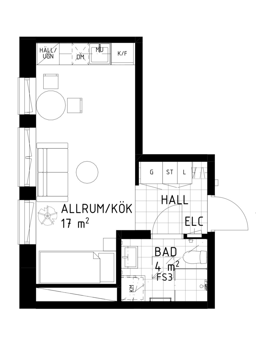 Nyproducerad, trivsam, ljus och välplanerad enrumslägenet med sovalkov
